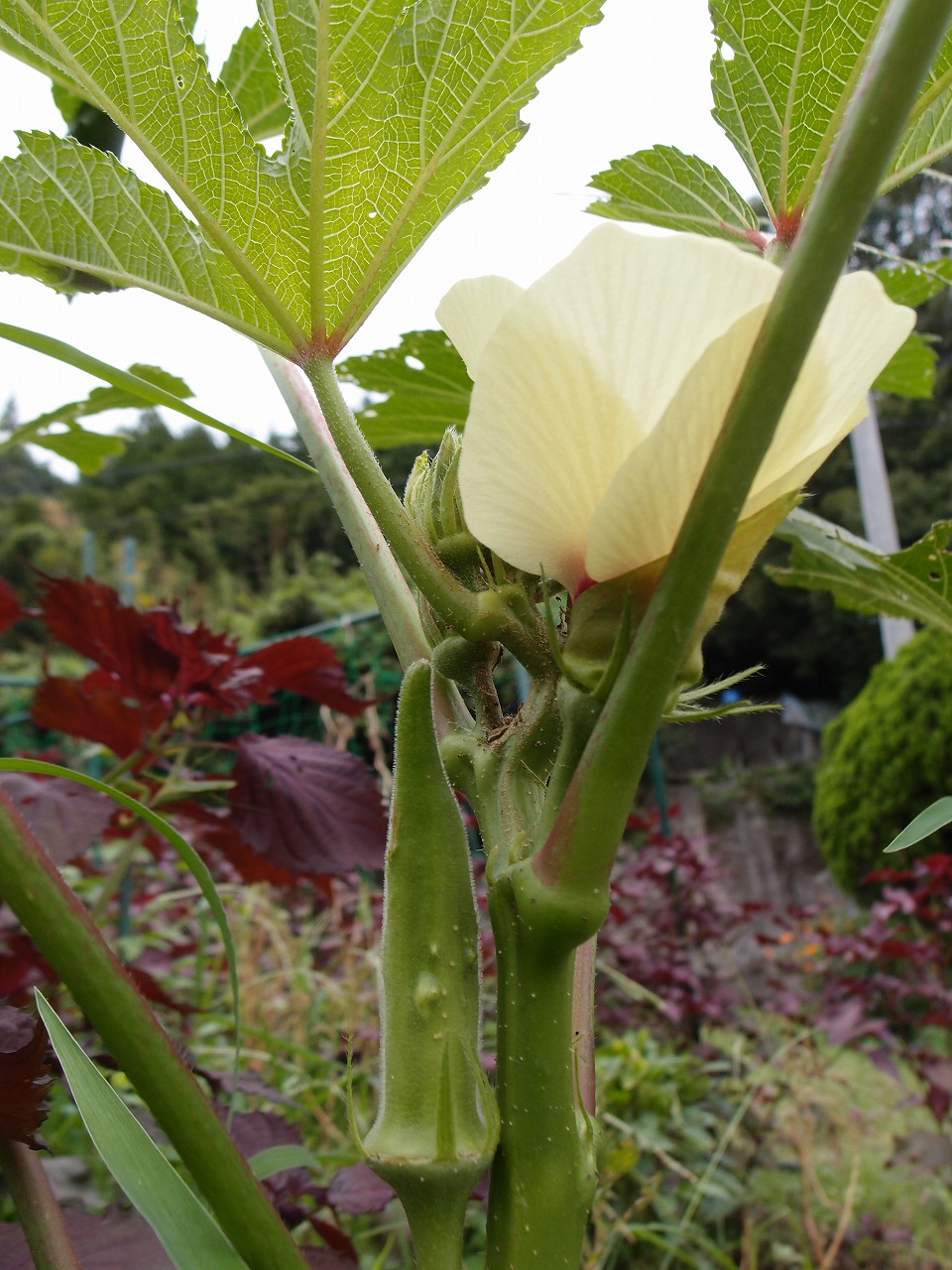 投稿日: 2014年9月15日オクラ よく食べる「オクラ」の生態?おくらは、蔓から下がっているものと勝手に想像していたのです。過日、若杉さんの畑にて成長中の「オクラ」を発見し唖然としました。黄色の美しい花と共に晴天を望み「起立」しているではありませんか。遠山の無知を、若杉さんは優しく無視してくれました。(笑) おくら